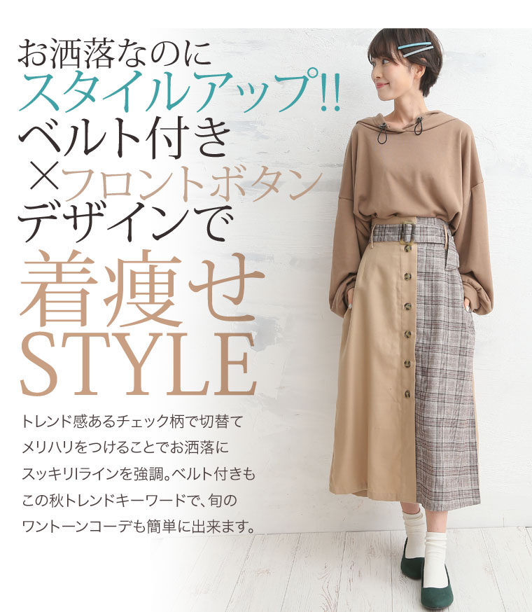ベルト付きチェック柄ロングスカート ボトムス パンツ スカート Chille レディースファッション通販anapオンライン
